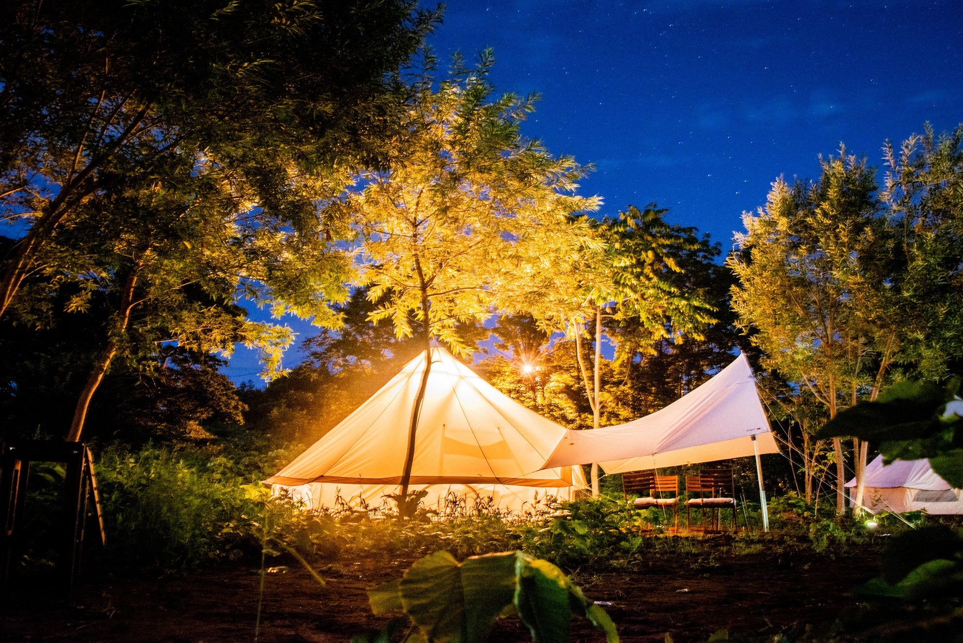 ※テントには、水回り設備がございません。トイレ、シャワーは共用バスルームをご利用ください。(シャンプー・コンディショナー・ボディーソープ・ドライヤー完備)