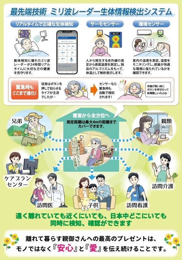 カメラ不使用で心拍・呼吸・体温を自動検知。──遠方から健康状態を“見える化”する在宅用見守りシステム