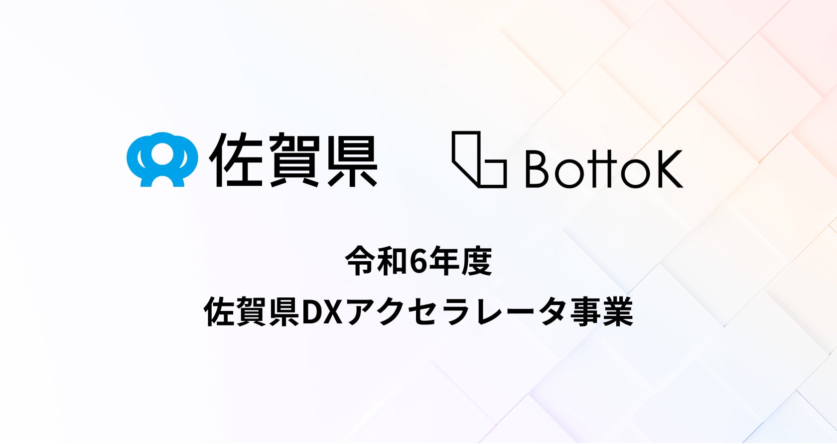 『地方のできないをできるに』をミッションに掲げ、人材育成を中心に事業展開する株式会社BottoK(本社:福岡市博多区、代表:坂田 嵩佳)は、佐賀県が実施する令和6年度「DXアクセラレータ事業」を、昨年度に引き続き2年連続で受託いたしました。今年度も佐賀県内企業のDX推進を加速・促進する取り組みを支援いたします。