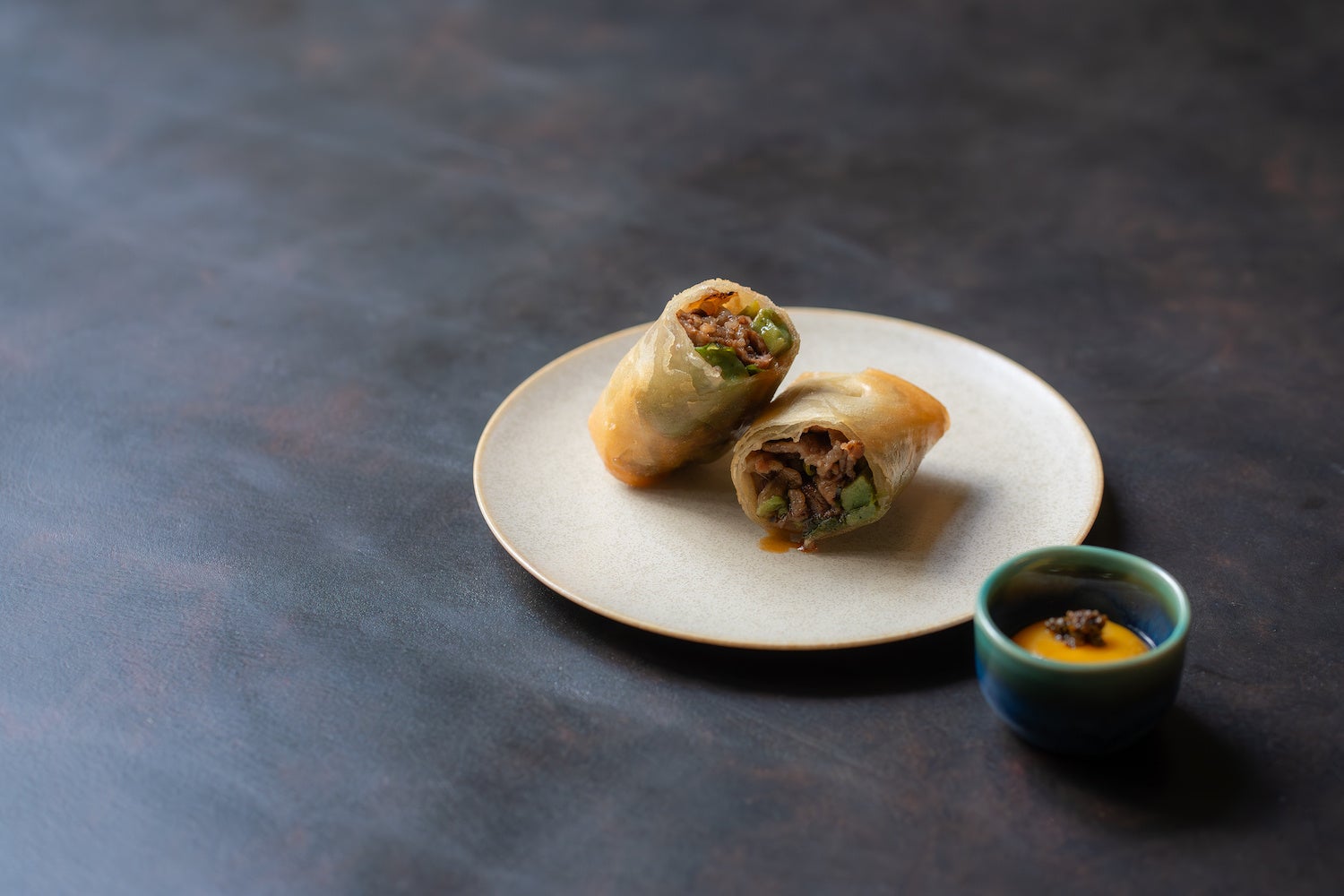 フードメニューは、ブリオッシュを使ったフレンチトーストで自家製だし巻きとホイップトリュフバターをサンドした「だし巻きサンド ¥1,200」、やまつ辻田の七味とお出汁のパウダーをブレンドしたスパイスを使った「シャカFULポテト だし七味¥800」、「瞬間プレス海老せんべい、ハリッサマヨネーズ 1P ¥700」、「すき焼き春巻き ¥1,350」、 など、日本のストリートフードをベースにアップデートしたユニークなバーフードから、お腹を満たすお食事メニューまで、豊富にラインナップ。