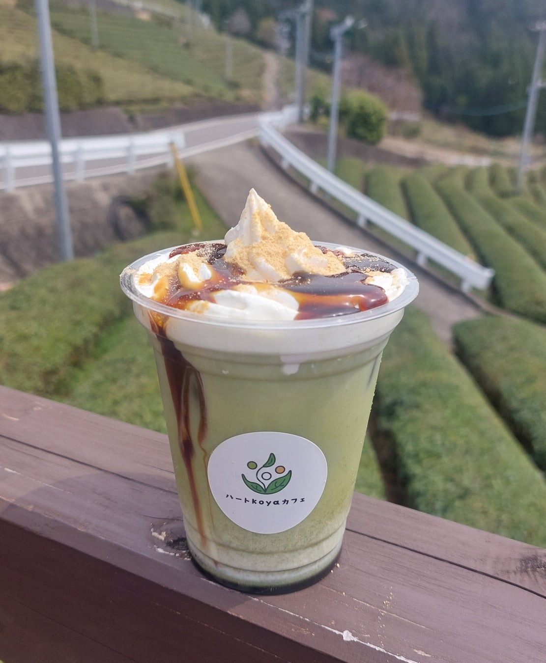 遊歩道の入り口には可愛らしいトレーラーカフェの「ハートkoyaカフェ」があります。絶景の余韻に浸りながら、無農薬で作られる春日茶本来の美味しさを感じられるドリンクやスイーツを楽しめます。