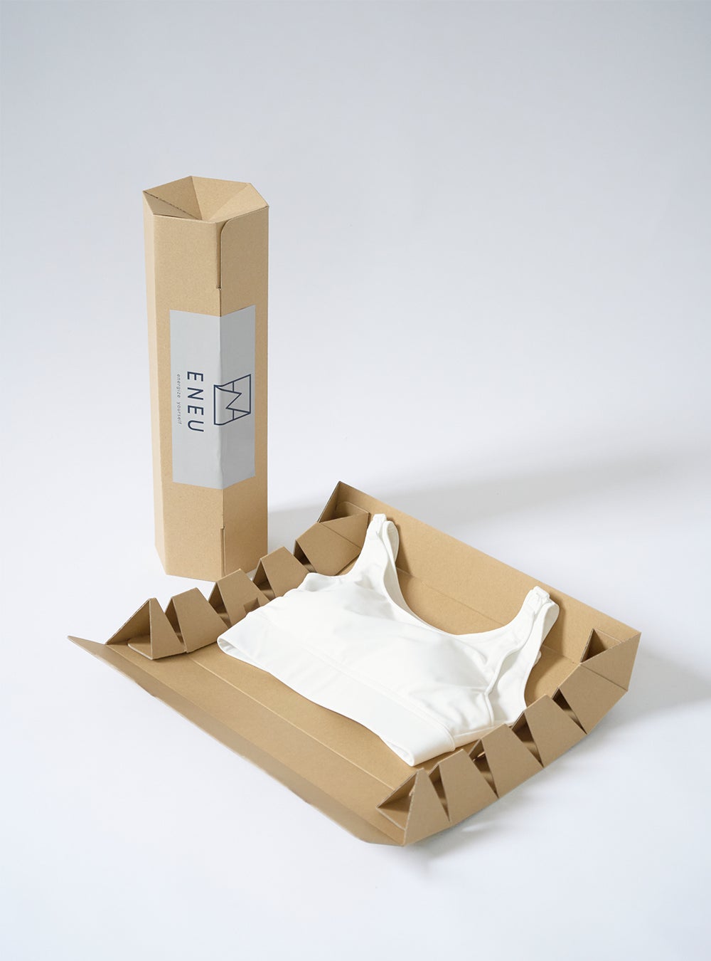 産後の女性向けファッションブランド「ENEU(エニュー)」(運営:株式会社rethink、東京都世田谷区、代表・鶴見寛子)は、日本で初めてローラーパッケージを採用しました。5月30日オンラインストアオープン、31日からローラーパッケージで配送開始です。海苔巻きにヒントを得たローラーパッケージは、同じ容積の箱型に比べて、使用する紙原料を10%削減。「なんだろう?」と目を惹く形でありながら、簡単に解体可能です。
