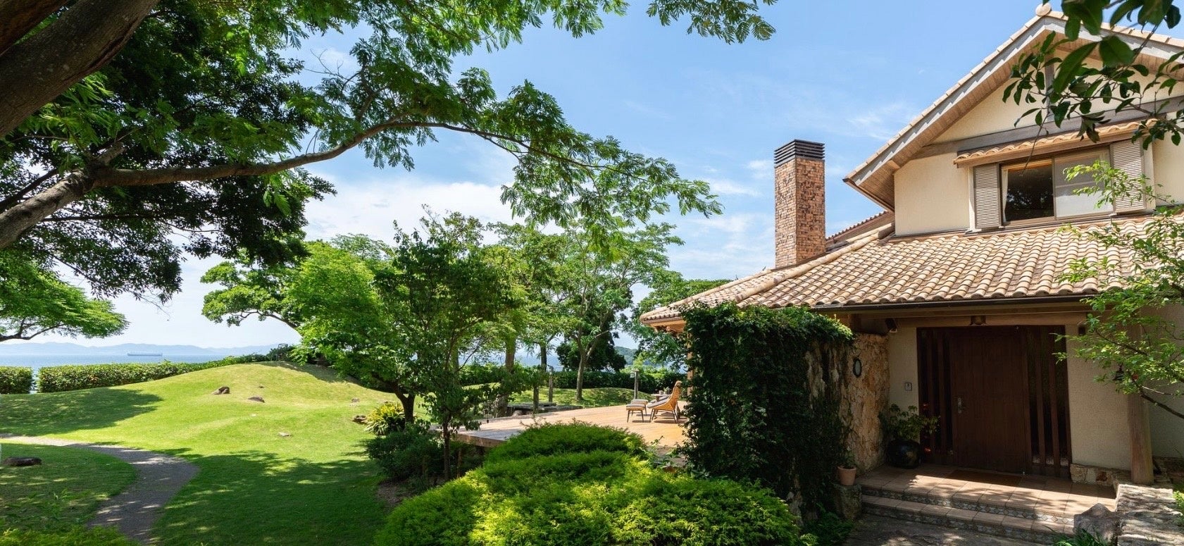 海を上から眺めることのできるこの場所は、敷地内に一歩踏み込むと別世界に迷い込んだ感覚に。