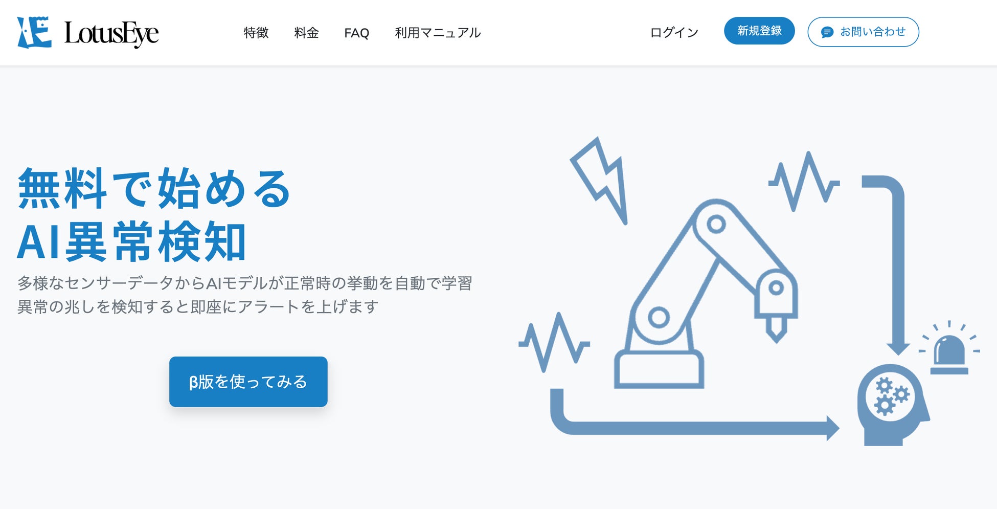 業界初のフリーミアム型AI異常検知サービス『LotusEye』のβ版が提供開始