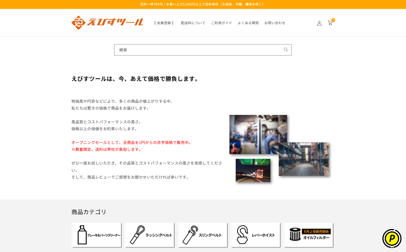 えびすツールでは、自動車愛好者や物流業界のプロフェッショナルの方々がご利用される商品を中心に、ご満足いただける商品を取り揃えております。ぜひ、この機会に「えびすツール」をご利用いただき、その品質と価格にご納得いただければ幸いです。