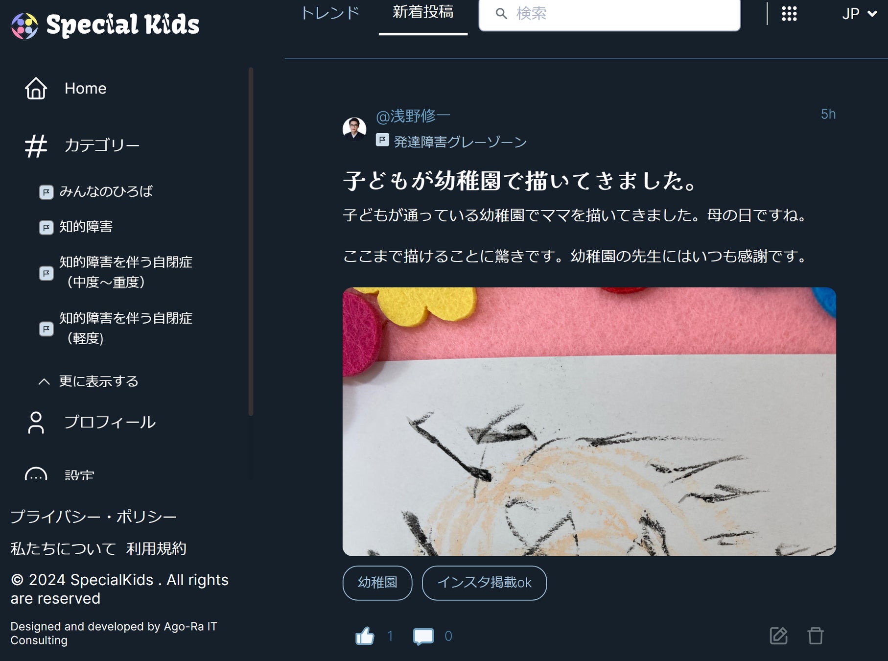発達障害のある子どもを持つ親やファミリーが交流・情報交換・励まし合えるSNS、specialkids.aiを、2024年5月13日をローンチしました!