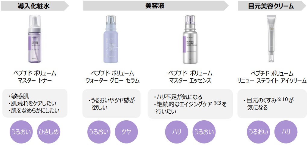 韓国のスキンケアブランド「DR.PEPTI(ドクターぺプチ)」は、新製品の導入化粧水「ペプチド ボリューム マスター トナー」と美容液「ペプチド ボリューム ウォーター グロー セラム」を日本オフライン店舗で発売します。8月7日(水)頃より全国のPLAZA、ロフトおよびロフトネットストア(一部店舗を除く)で順次先行発売、9月7日(土)頃より全国のバラエティショップなど(一部店舗を除く)で順次発売します。