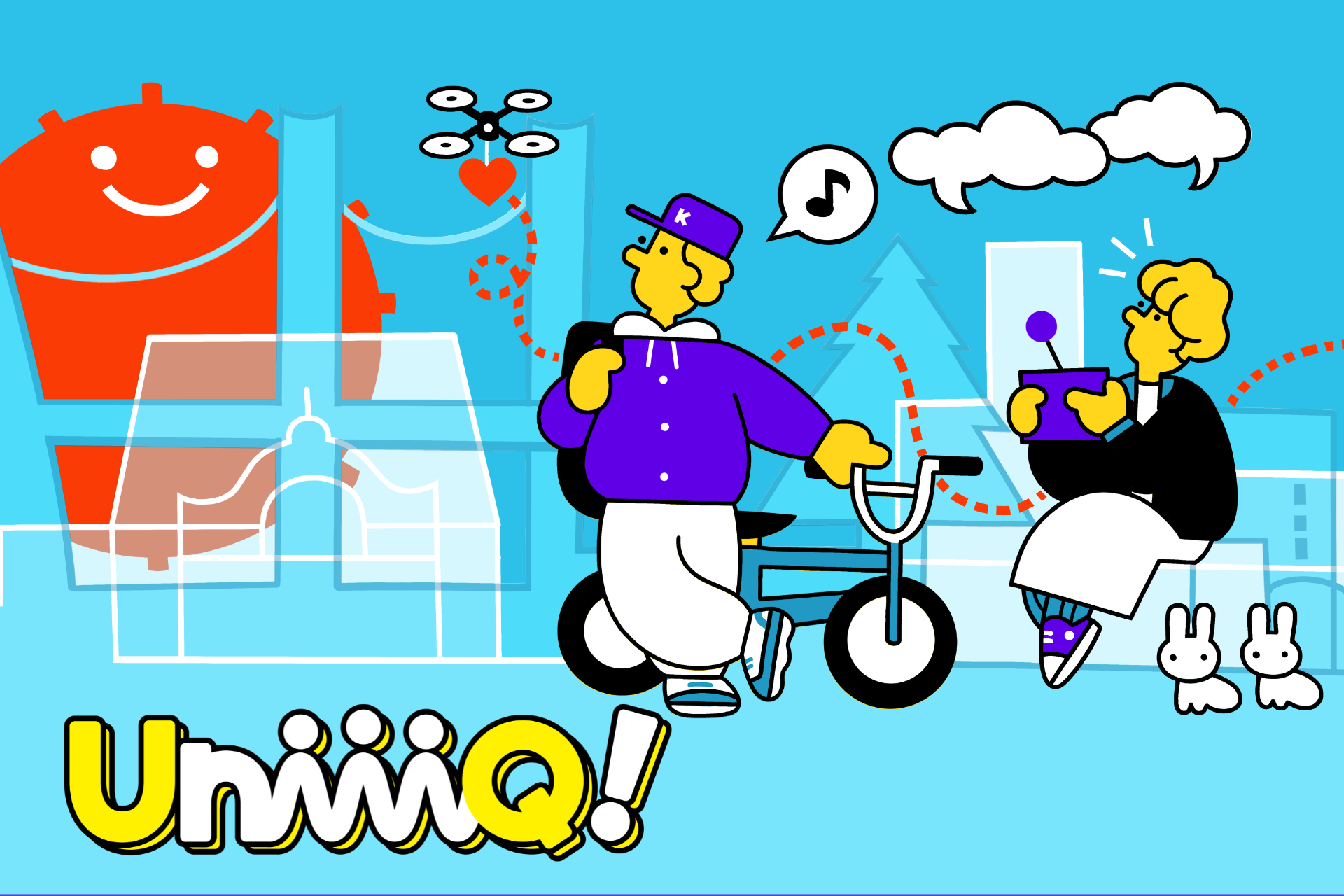 人(i)が集まり熱量の輪が広がっていく場所に」と思いを込めて「UniiiQ!」という造語で表現しました。