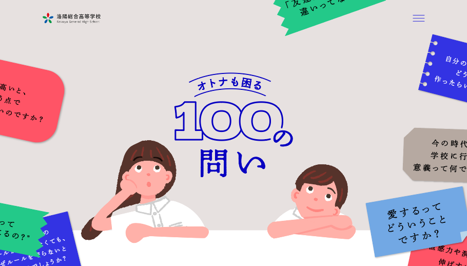 本プロジェクトでは、Webサイト/Instagramアカウントを立ち上げ、各業界で活躍するプロフェッ ショナルや多種多様な世代・属性・働き方の大人たちに、人間関係のあり方や将来の考え方・社会への 疑問など5つのカテゴリーで高校生から集めた疑問を100の問いとして投げかけます。人工知能(AI) が生み出した模範的な答えではなく、紆余曲折を経てきたからこそ行き着いた答えに価値があるという 考えに基づき、様々な大人の答えを集めます。一般の方からの回答もサイト内で受け付けており、多種 多様な答えに、高校生だけでなく私たち大人も出逢うことができます。