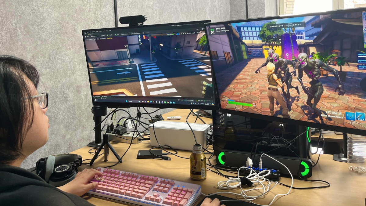 当社が運営するesports施設「e-XP」に設置された開発ルームは、一般の方に無料開放し、ゲーム開発の過程を間近で見学することができます。また、ゲーム開発に興味のある学生や市民の皆様には、「BePPU BUSTERS」で再現したい別府の風景や建物、遊びたいゲームコンテンツの企画・開発に参加していただけます。現在の別府の街の完成度は30%ほどであり、参加者の皆様のアイデア次第で、さらに多彩な街並みや遊び方が実現します。初心者の方でも、会場のスタッフが丁寧にサポートいたしますので、ぜひお気軽にご参加ください。