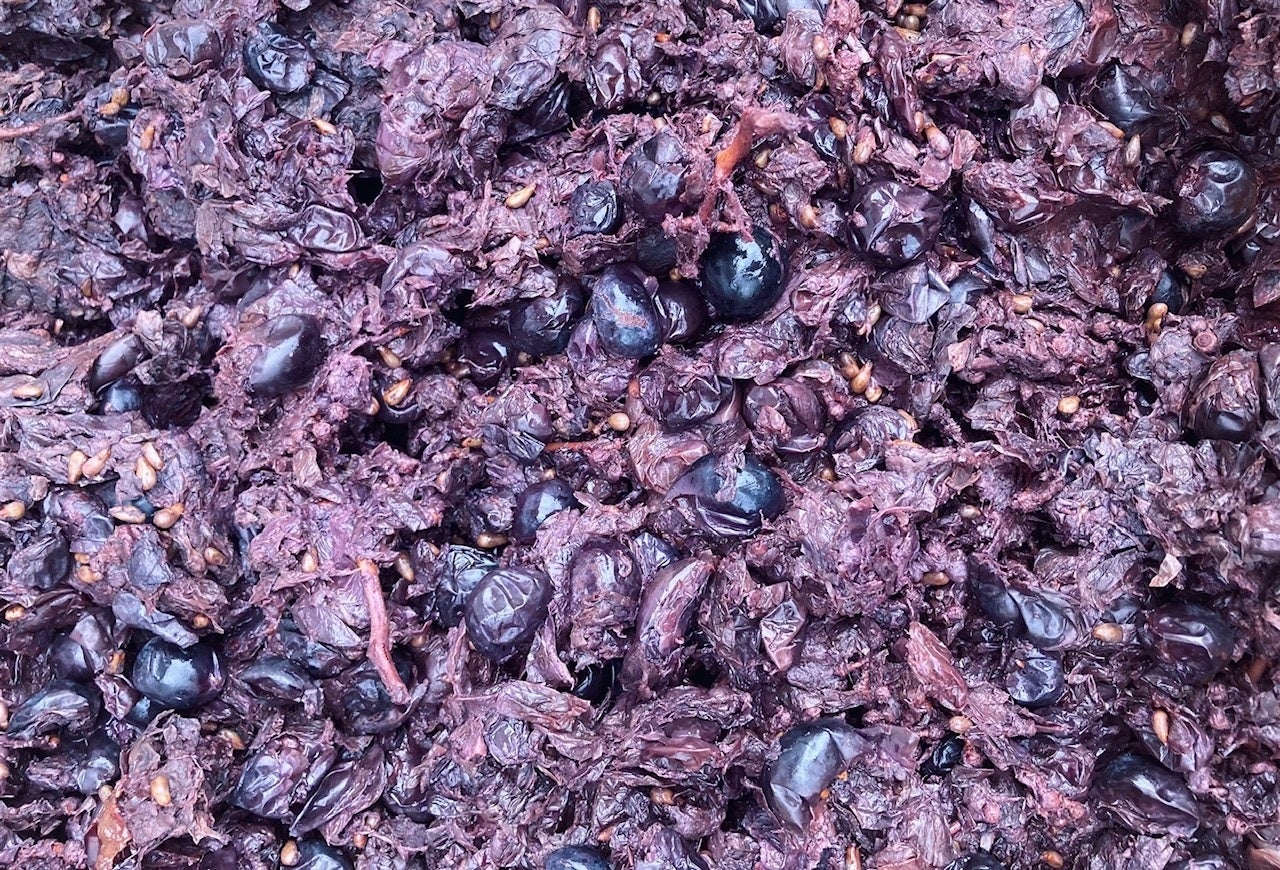 FUFPは2022年に活動をスタート。ワイン醸造の工程で発生するブドウの皮や種のワインパミスに出会いました。ワインパミスの一部は畑の堆肥や家畜の餌として活用されているものの、ほとんどが産業廃棄物として廃棄されているという現状と、実は食べることができポリフェノールも豊富という事実。私たちはこのワインパミスを、出来るだけ多く消費でき保存しやすい形状として、乾燥・粉砕加工して活用することを考えました。乾燥することで、100gあたりのポリフェノールが2600mg(2024.4.17食品成分検査済)と、同量のワイン(100mlあたり230mg~260mg)と比較して10倍以上の量が含まれることになり、アルコール分がほとんど含まれていないためアルコールが苦手な方でも摂取しやすいのが特徴です。