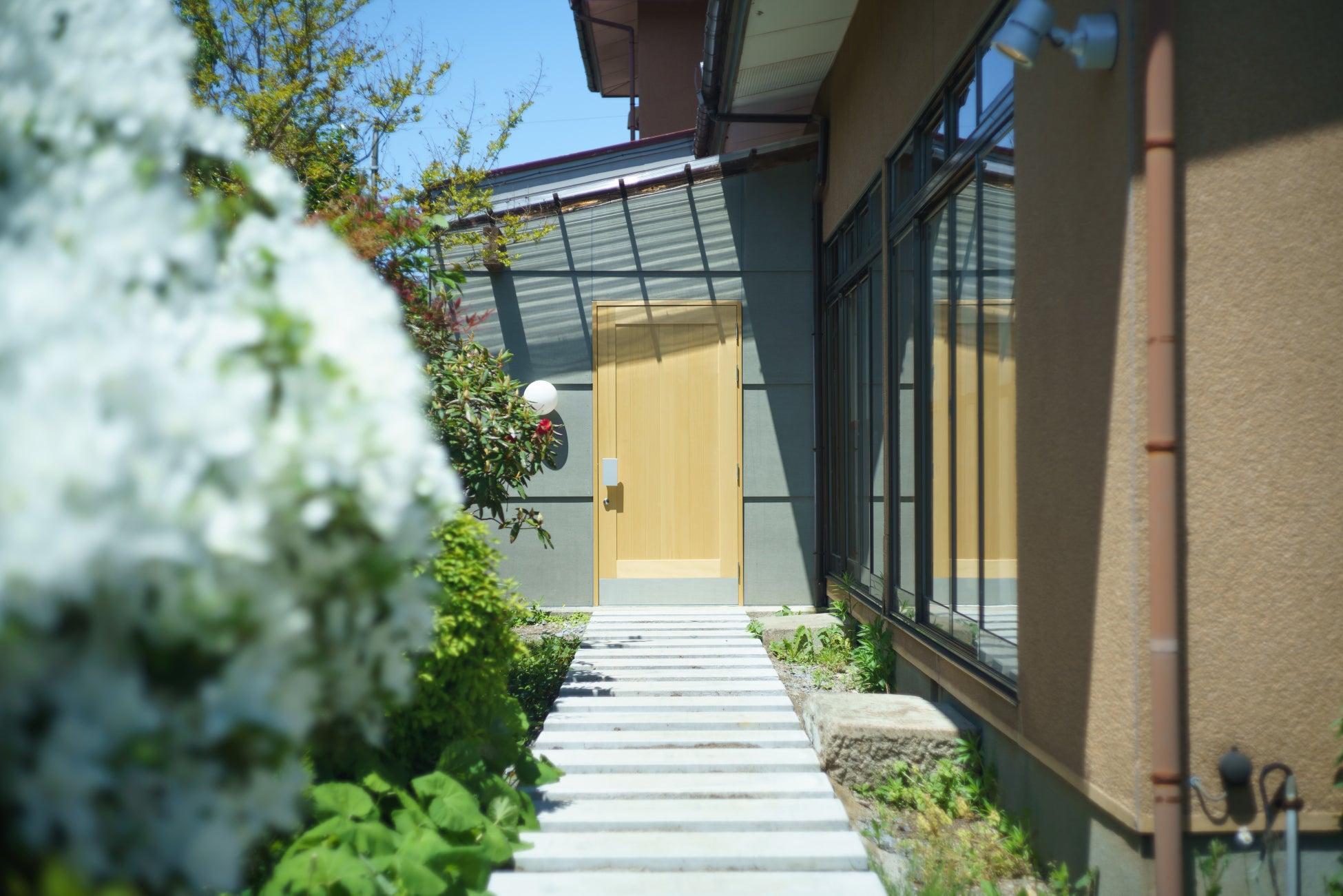 「朝市通り」の小路に現れる「市とコージ」。かつて朝市を訪れる旅人を迎え、地域の名士が集う社交場としても親しまれた旅館跡地に立つ古民家を、五城目に縁あるクリエイターチームとともに再生しました。