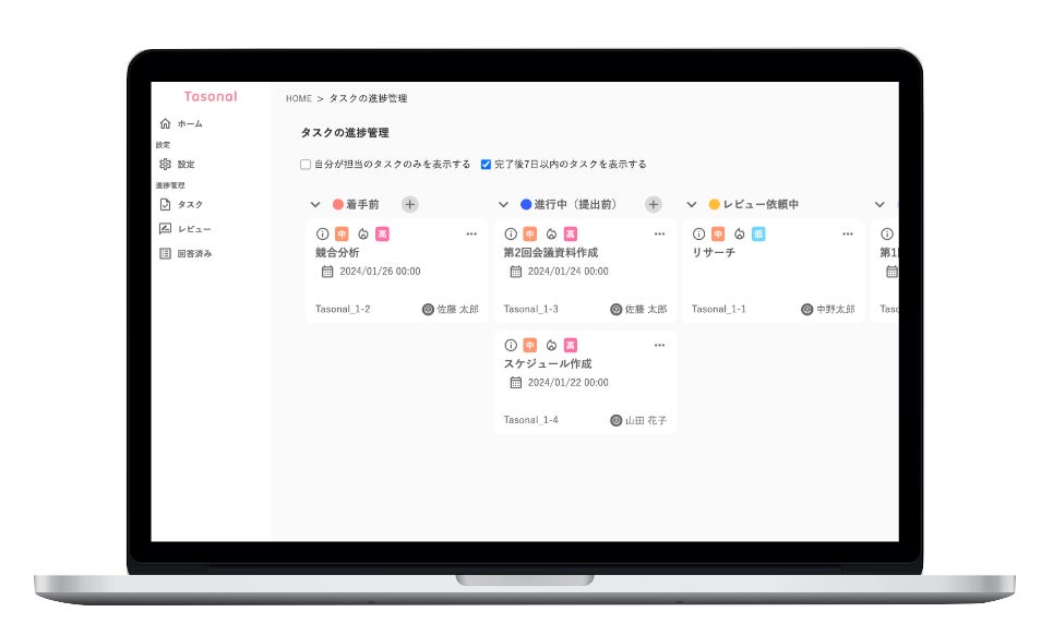 そんな日々の進捗管理の煩わしさをTasonalは解消します