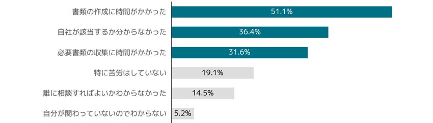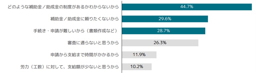 補助金/助成金を申請した企業は、書類作成や資料の収集に時間がかかったり、そもそも自社が制度の対象か分からなかったりなど、様々な苦労があったことが分かりました。
