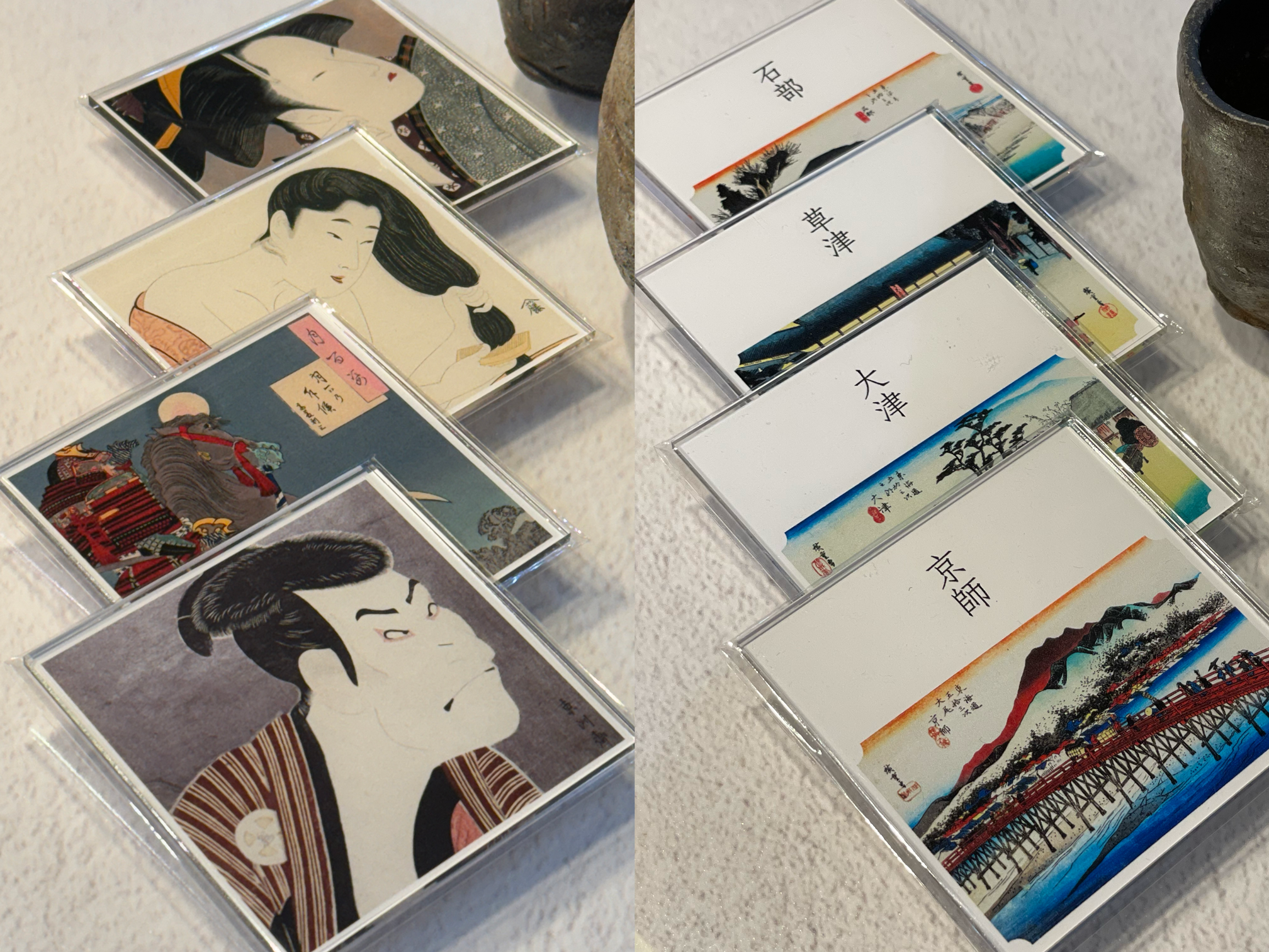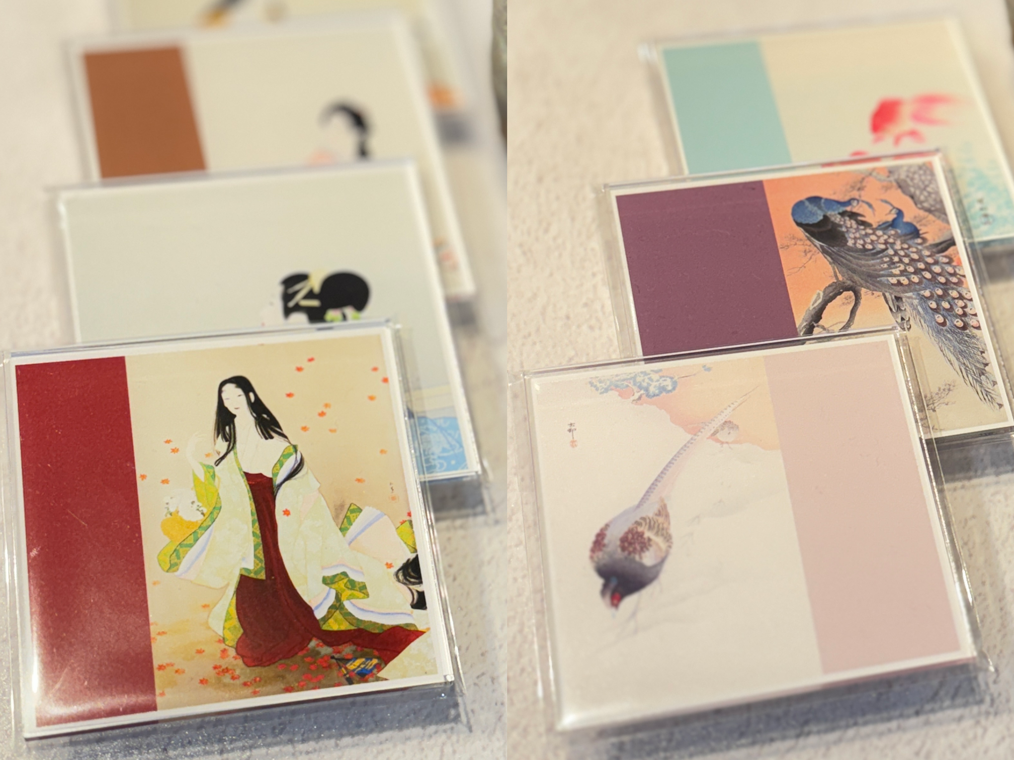 80mm×80mmの透明アクリルコースターに印刷しているので、繊細で高級感のある仕上がりになっており、テーブルやテーブルマットの色に応じて風合いが変わります。外国人観光客の方向けの日本みやげやプレゼント、飲食店でのご利用のほか、ディスプレイやコレクションとしてもお楽しみいただけます。