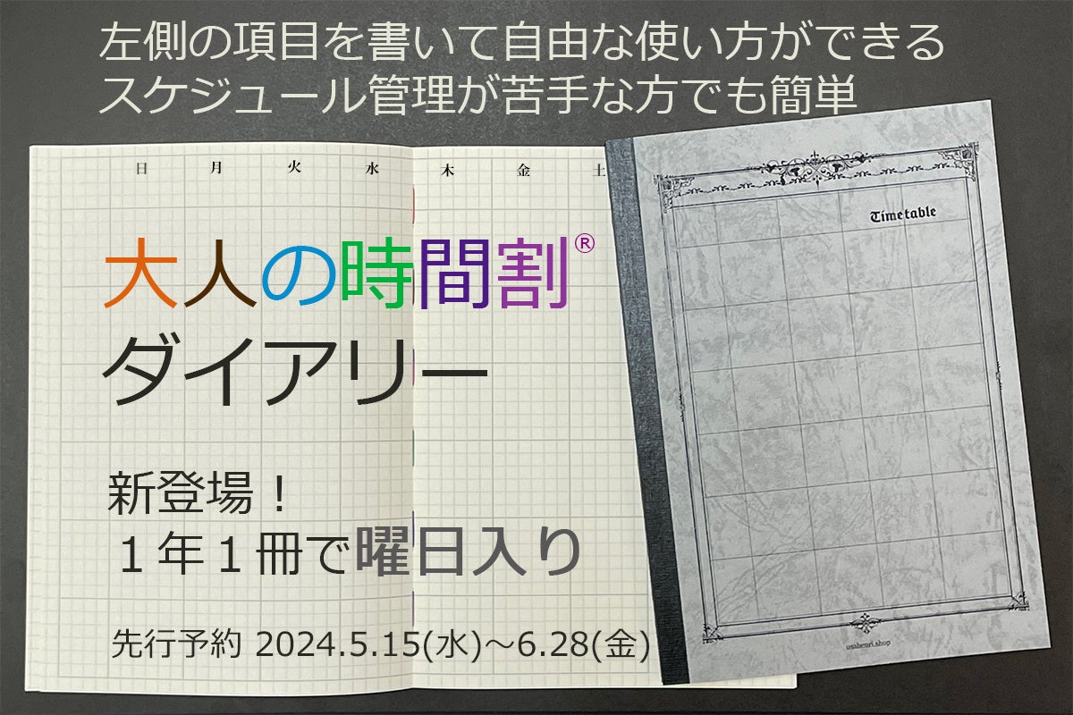 1年1冊タイプの「大人の時間割ダイアリー」を製品化する。