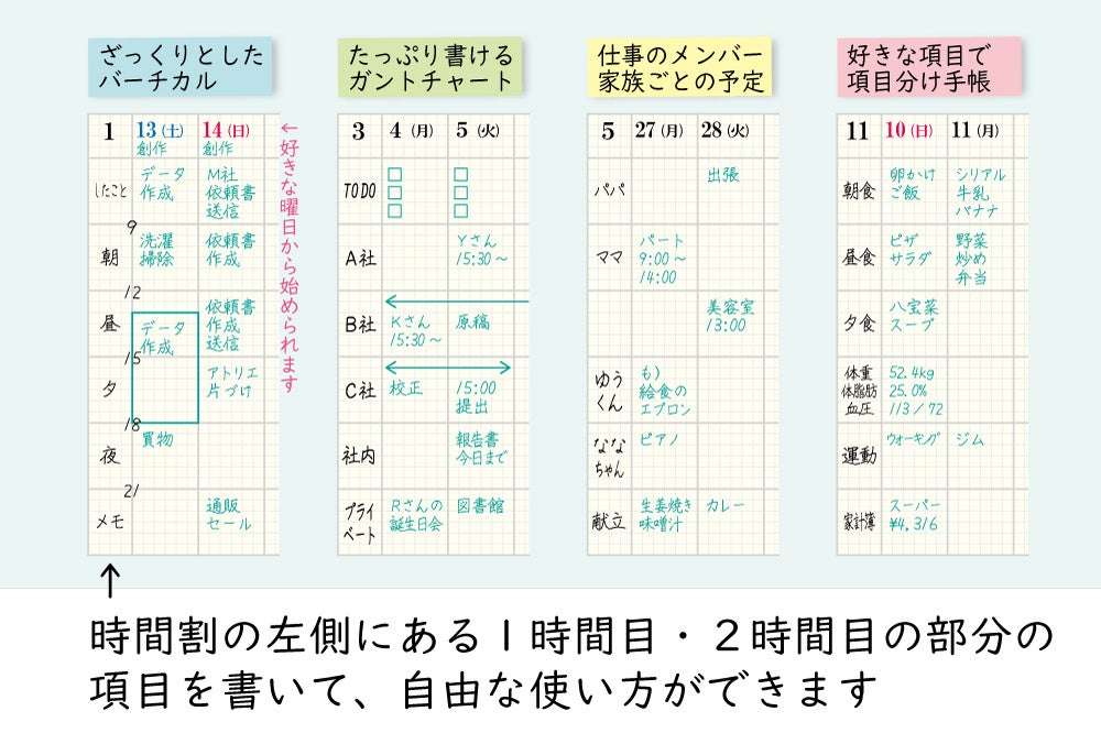 ・書きたい内容が複数あり、仕事内容や家族ごとの予定などを、見やすく分けて使いたい方