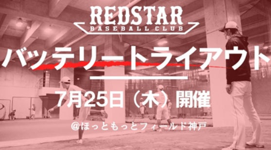特定非営利活動法人レッドスターベースボールクラブバッテリートライアウト 開催のお知らせ