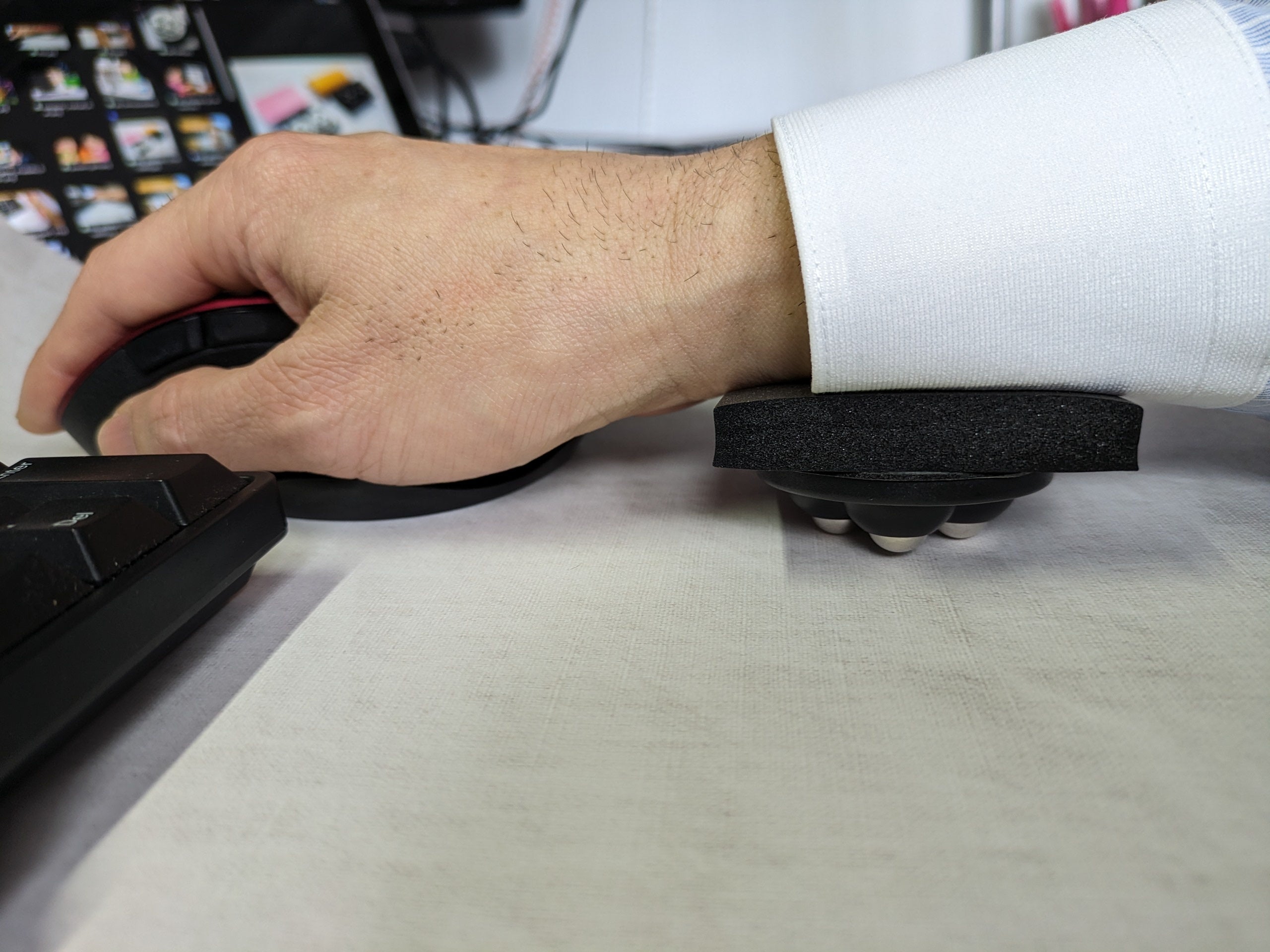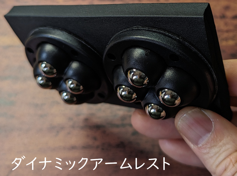 球体ではなくて、車輪がついたアームレストもありました。しかし、これは行きたい方向に行くのに、一瞬、車輪が向きを変えるために軌跡が揺らぎ、腕が直線的に動いてくれませんでした。「なんだ、この一瞬、グニっとした揺らぎは!」と気持ち悪く思う瞬間でした。