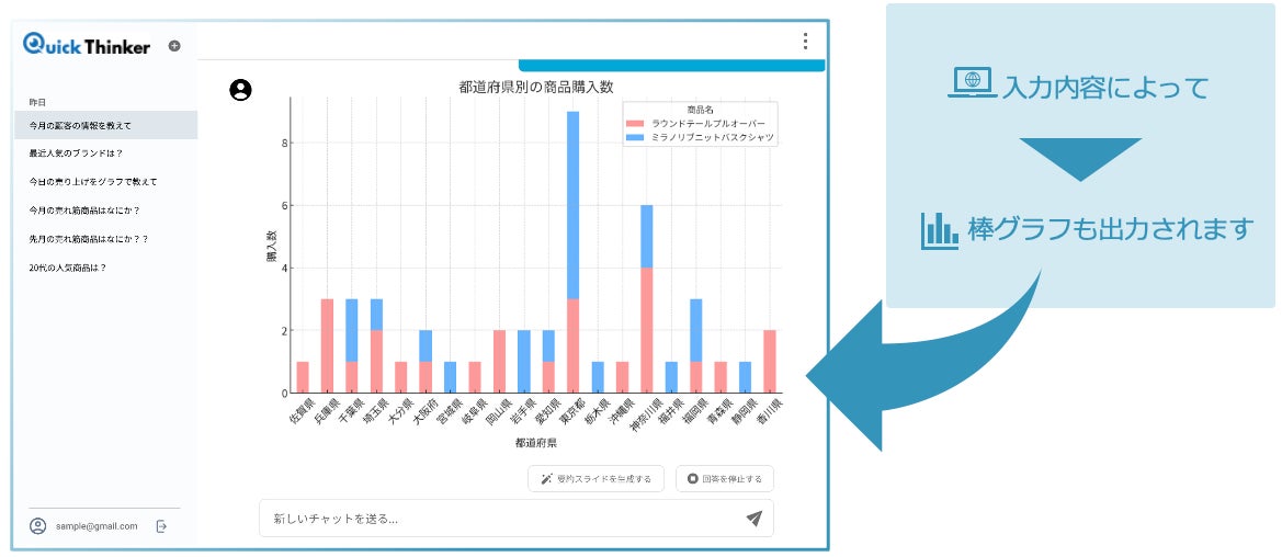 2024年7月22日(月曜日) – ATIRO株式会社(本社:東京都中央区、代表取締役:織田 慎弥)は、AI(LLM)を活用したデータ分析支援サービス「QuickThinker」を正式にリリースすることをお知らせいたします。この新サービスは、誰でも簡単にデータ分析が行え、チャット形式で即座にやり取りできるデータ分析ツールで、企業におけるデータ分析による事業活動を支援します。