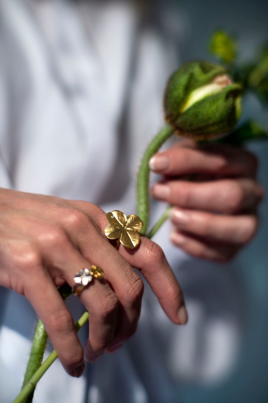 フローラダニカのアイコンである四つ葉のクローバーのジュエリーは、何十年も前にデンマークの自然の中で摘まれた本物の四つ葉のクローバーのイメージを忠実に再現しています。四つ葉のクローバーは1万本に1本の割合で存在する希少なクローバーで、最初の葉は希望を、2番目の葉は信仰を、3番目の葉は愛を、4番目の葉は幸運を表しています。