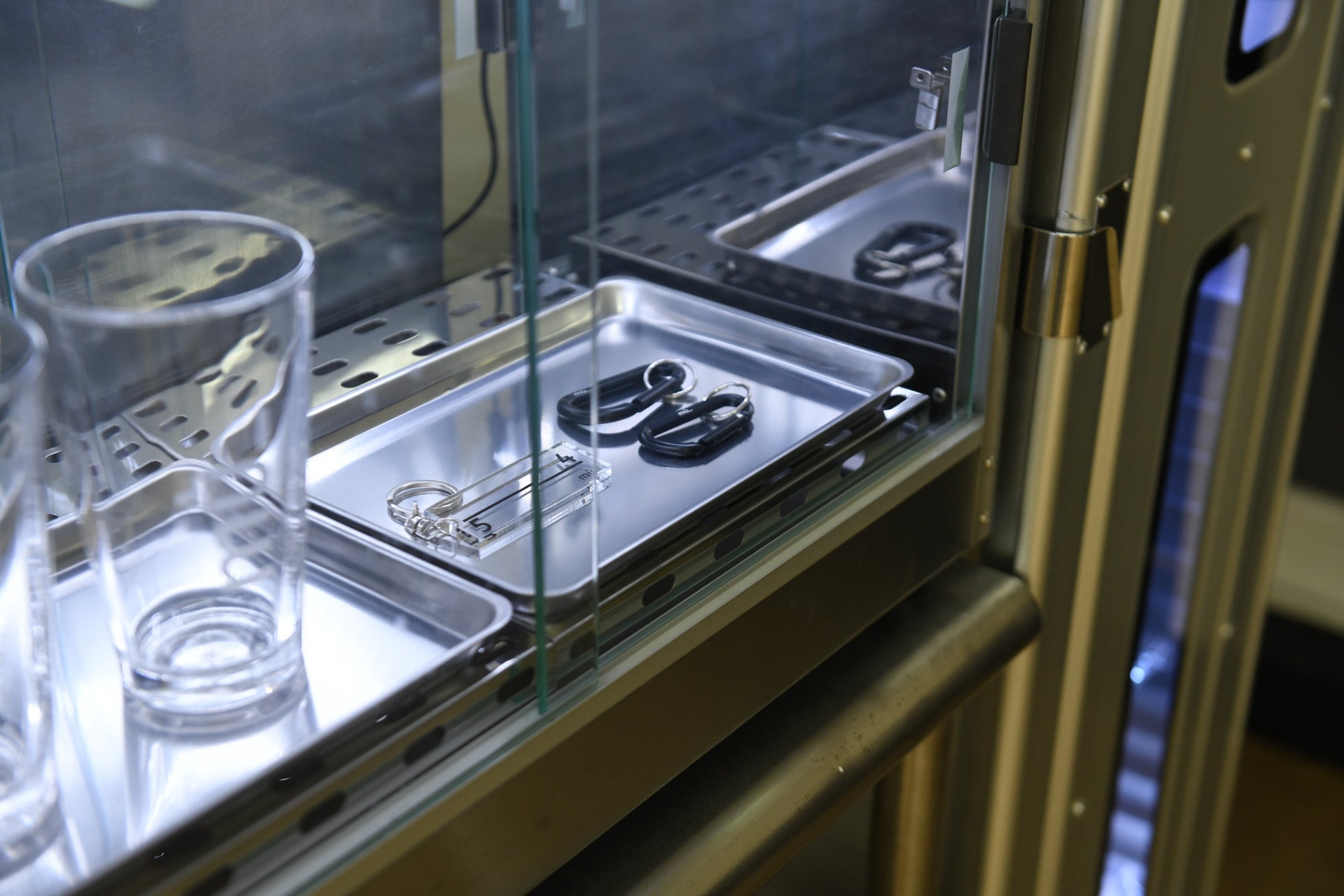 またシルバーの厨房什器は、光や音によってスペーシーな空間に見せることができ、違和感を感じてもらえるようにしています。
