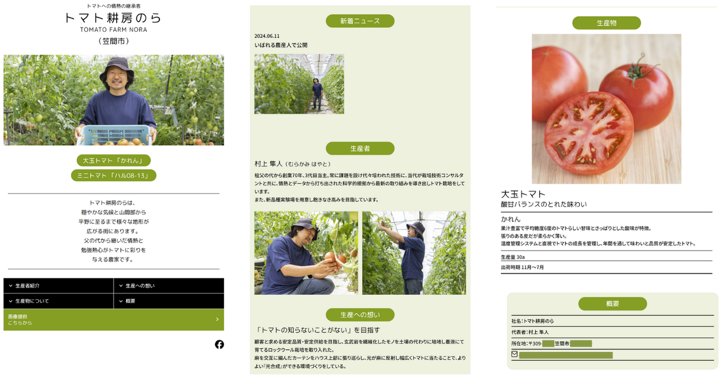 ・農業生産者自らが発信する「生産者の紹介」「生産物」「生産への想い」の他、生産者と直接コンタクトが取れる問い合わせ先を掲載。スーパーや飲食店などの流通側が直接生産者を探すことができ、新たな取引先が見つかる場となります。