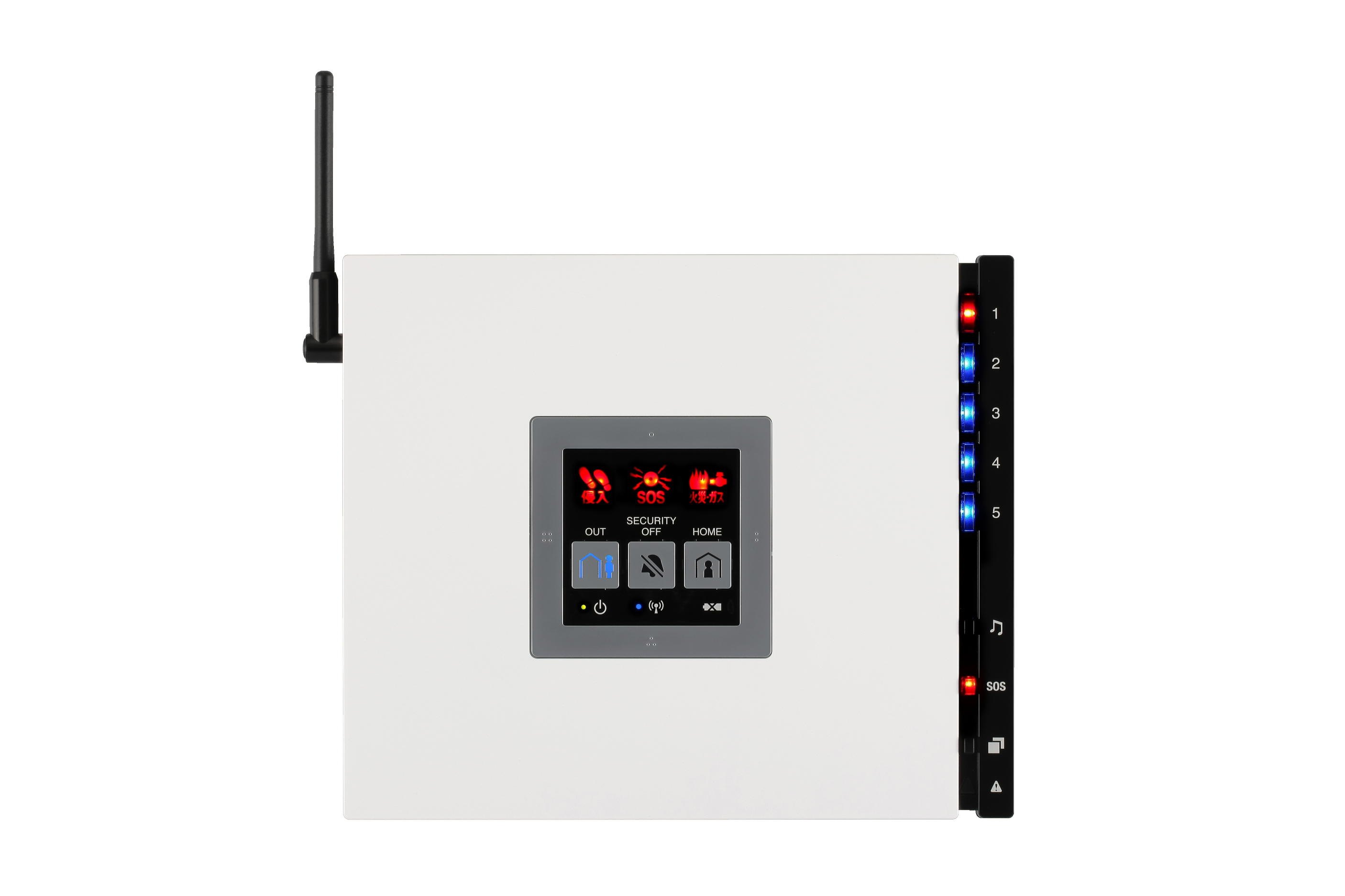 RHS2は、ご自宅やオフィスに設置するセキュリティ商品です。各部屋に設置された防犯センサーをワイヤレスで通信し、安心安全を守る「脳」のような役割を担います。防犯センサーが侵入者や異常を検知した時には、RHS2本体の音・スマホアプリ・メールなどでお知らせします。