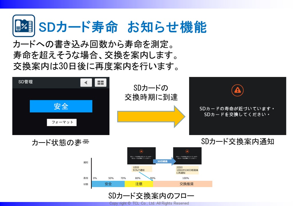 SDカードの寿命お知らせ機能を搭載。(純正カード使用時)