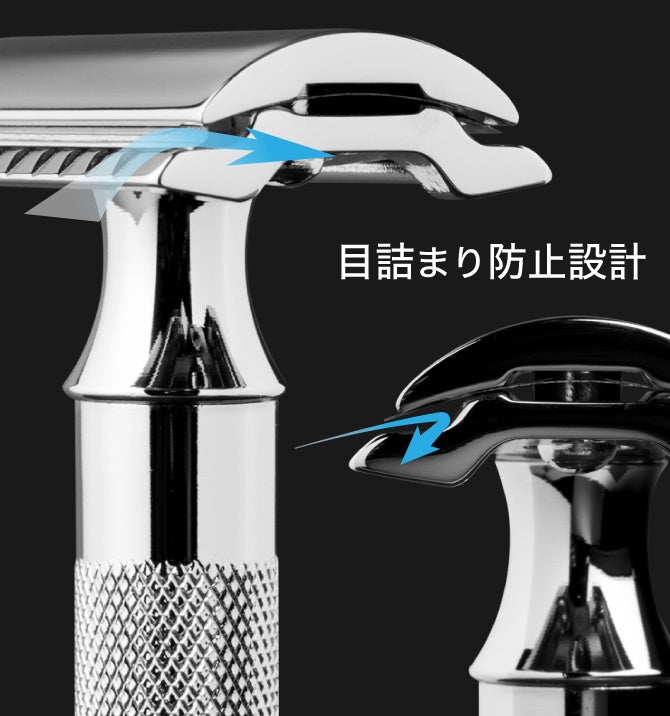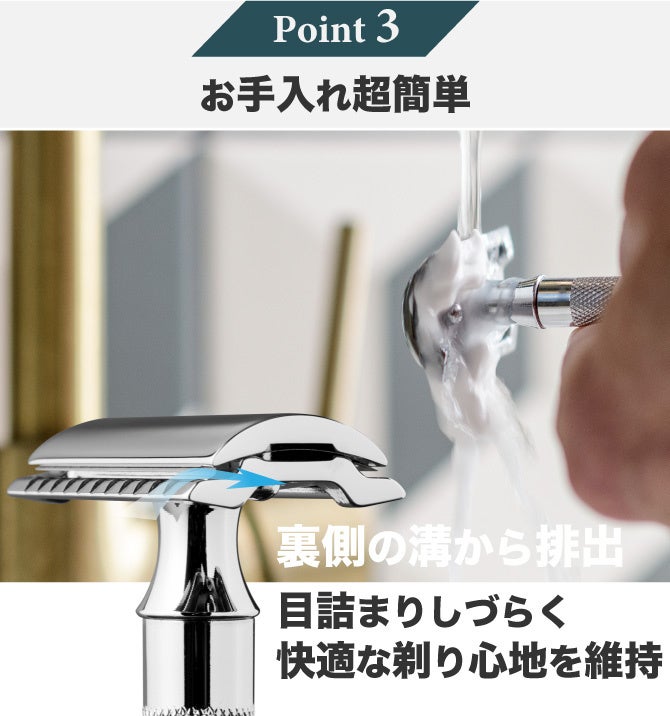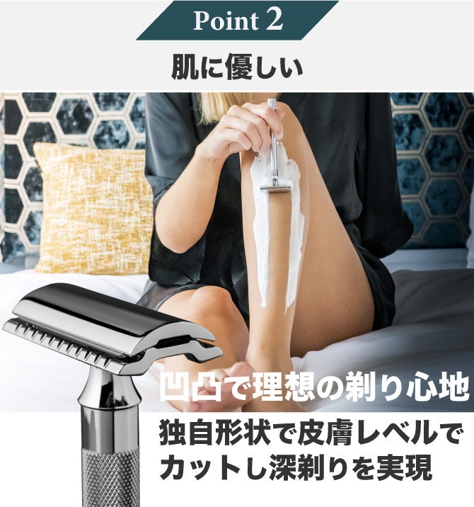 2) 皮膚を傷つけずに深剃りを可能にする独自の設計