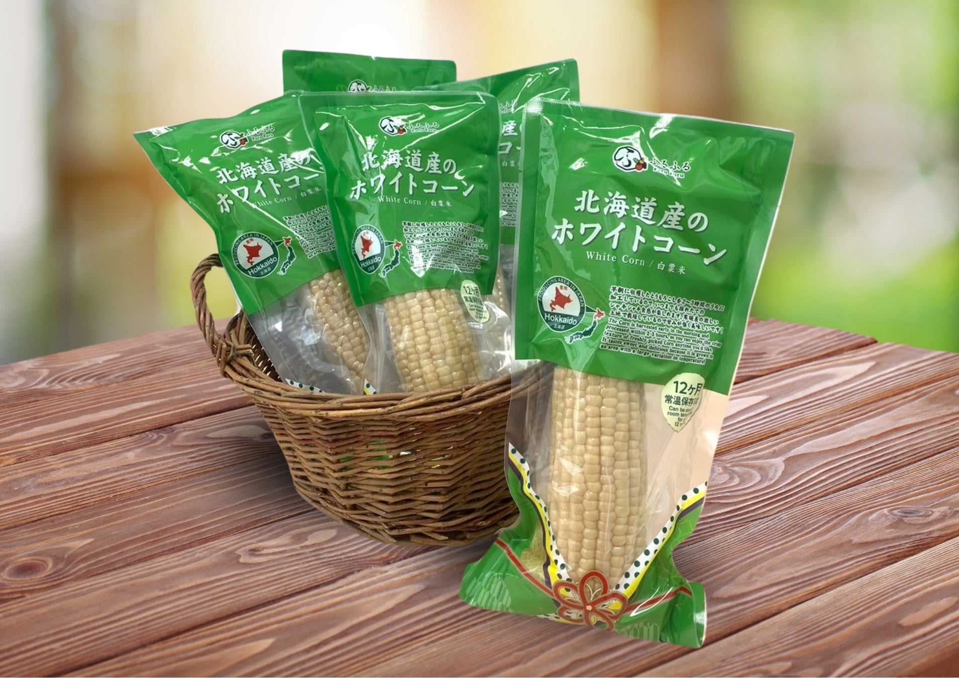 「北海道産ホワイトコーン」は、新鮮なホワイトコーンを収穫したその日のうちに工場で茹でて、真空加工しています。これにより、採れたてのシャキシャキとした食感とホワイトコーン本来の甘さをそのまま閉じ込めています。