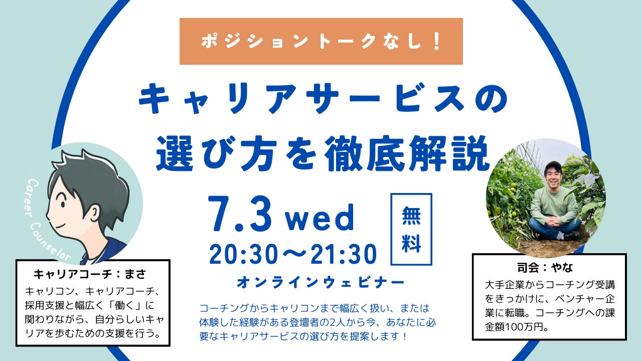 オンライン形式でキャリアコーチとして活躍する、まささんと「キャリアサービスの選び方」をテーマのイベントを開催します。