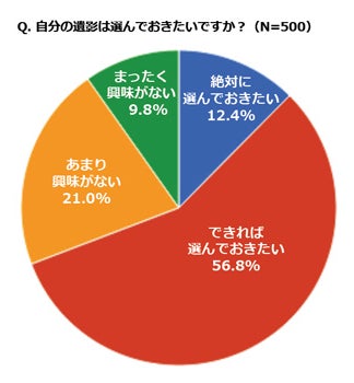 葬式には欠かせない遺影ですが、フォト総研の調査によると、「自分の遺影を自分で選びたい」と考える人が7割である一方、実際に写真を選んでいる人はわずか2%にすぎないという結果が出ています。「遺影にはこだわりたい」という思いがあっても、具体的に考えることには抵抗があるという人が多いことが伺えます。