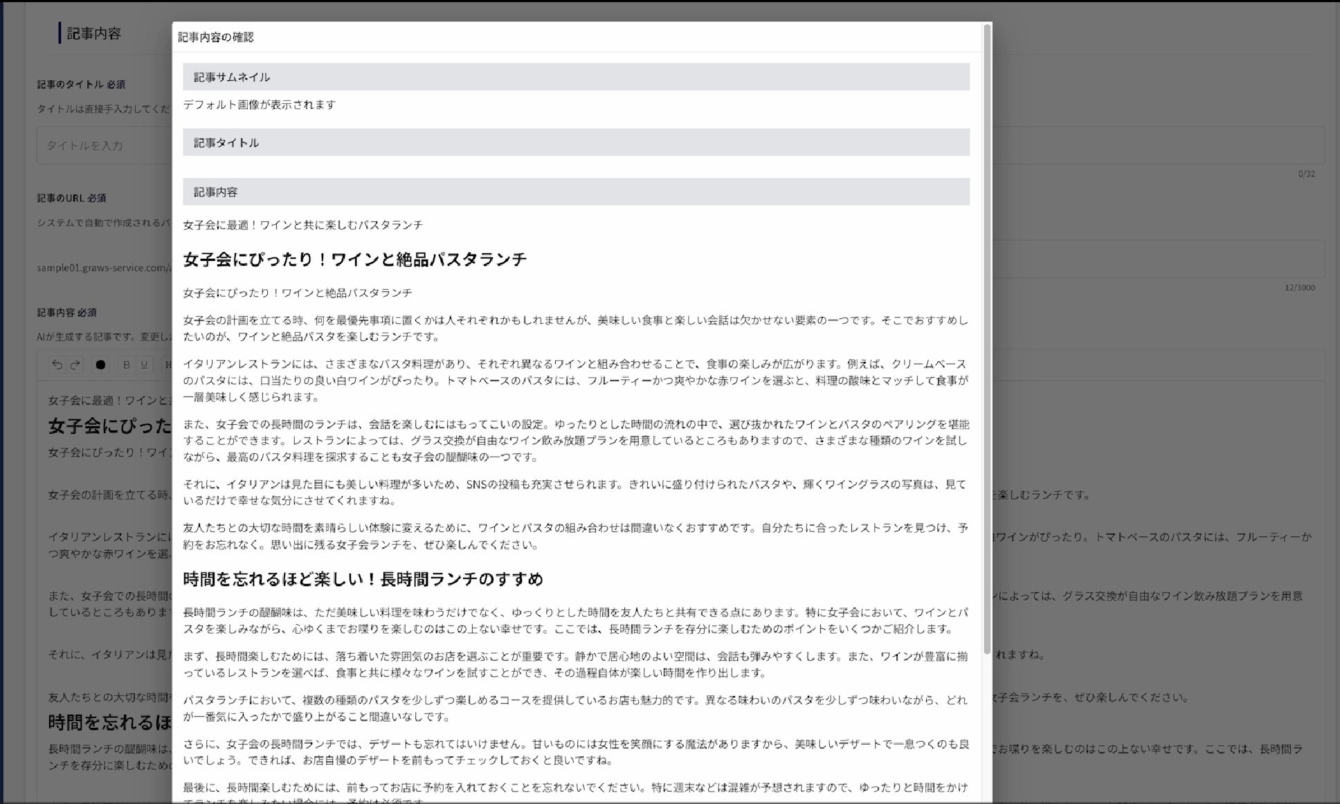 中小企業・個人事業主の集客・求人を総合的に支援するNSSマーケティング株式会社(本社:東京都新宿区西新宿 代表取締役:外山 剛敏 以下「NSSマーケティング」)は、独自開発したAIツール【GRAWs】を搭載したCMSをリリースしました。