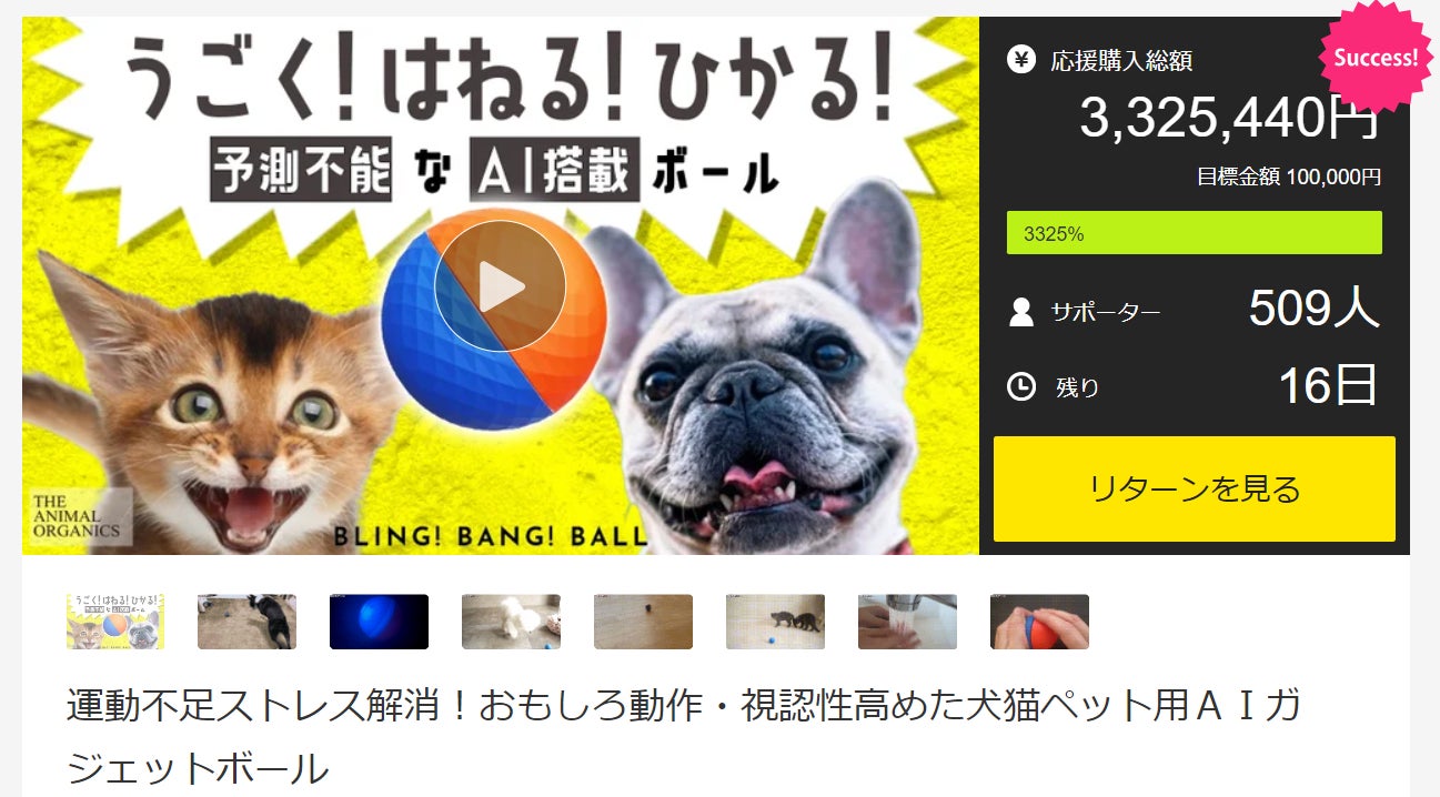 たくさんのわんちゃん・ねこちゃんに是非とも遊んでほしい、真のストレス解消「BLING! BANG! BALL」、より多くのお客様へご覧いただけるようご支援、拡散のご協力をいただけますと幸いです。