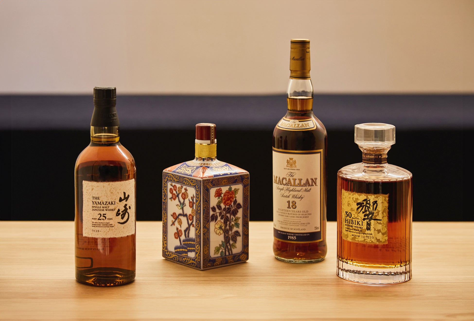 世界各国の銘蒸溜所のワールドクラスのラインナップを揃えながら、山崎、白州、響をはじめとする日本ウィスキーが充実。店頭では滅多に見ることがない希少なセット品や、九谷焼で設えられたスペシャルボトル・コレクション、既に生産が終了し流通量が限られたアイテム(軽井沢)など、投資価値が高いものも並んでいます。