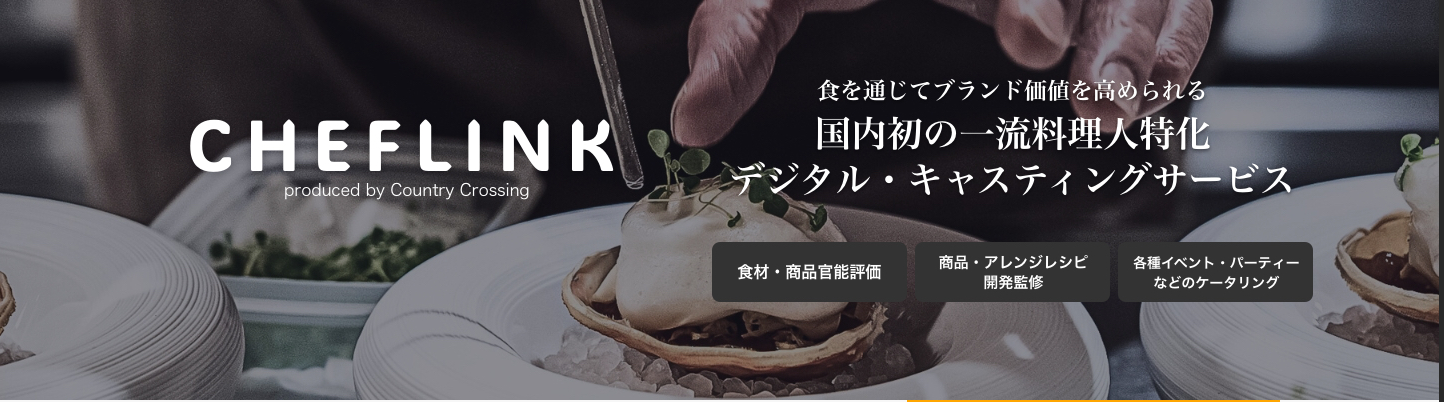 「CHEFLINK」は、アレンジレシピの開発、商品監修、イベントや研修会の登壇、ケータリングサービス、食材官能評価(サンプリング)、飲食店プロデュース、コンサルティングなど、食に関する分野の一流料理人特化のキャスティング仲介サービスです。クライアントのニーズに合わせた最適なキャスティングを提案します。