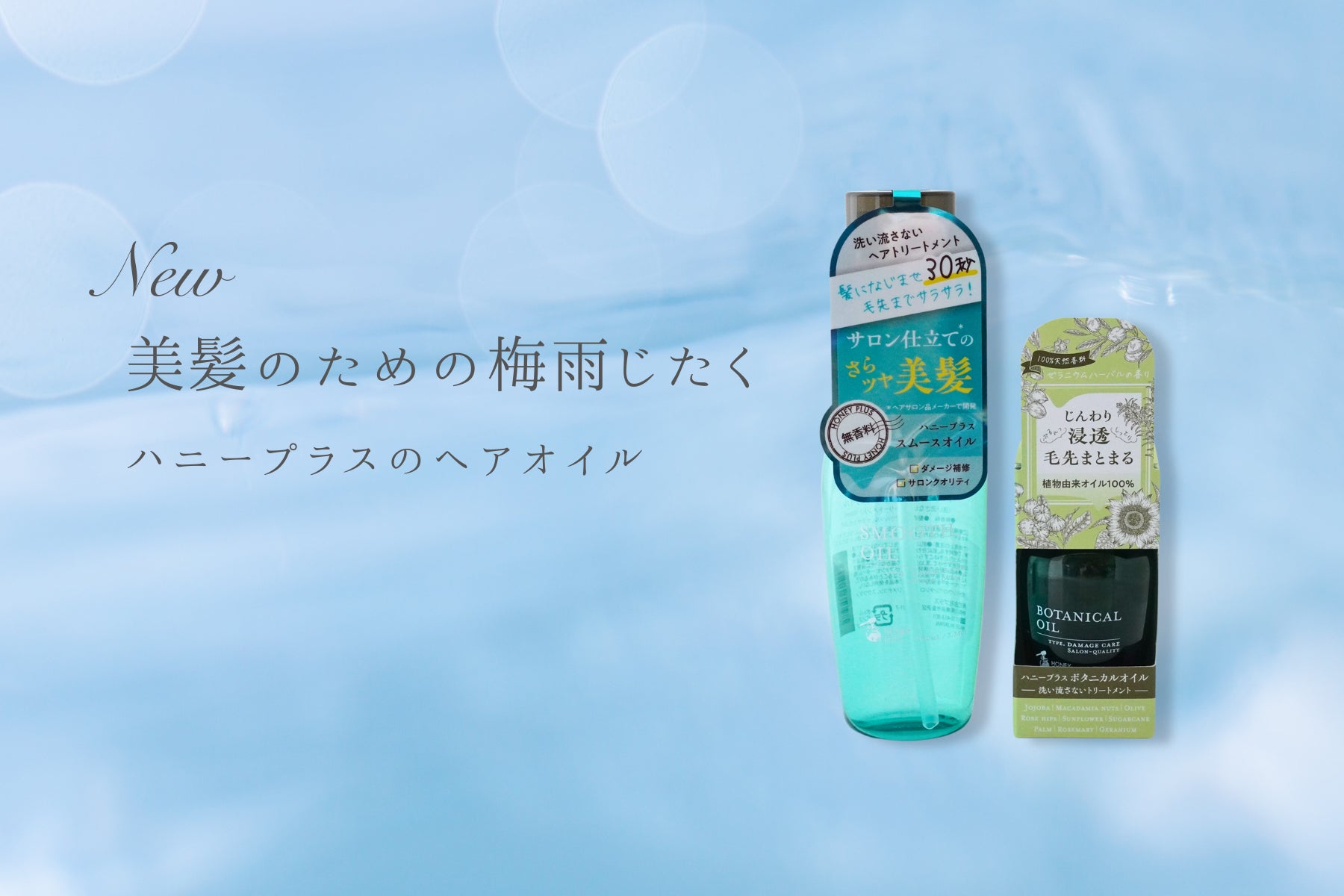 株式会社プラス(神奈川県横浜市)は、「HONEY PLUS(ハニープラス)」シリーズから新商品、乾燥で広がりがちな毛先までしっとりまとまる植物由来成分100%の「ボタニカルオイル」と絡まりやすい髪も30秒(※1)でするんっとサラサラの指通りに仕上げる「スムースオイル」を2024年6月12日(木)より公式通販サイト、ECサイト(Amazon)、一部バラエティショップにて順次発売いたします。