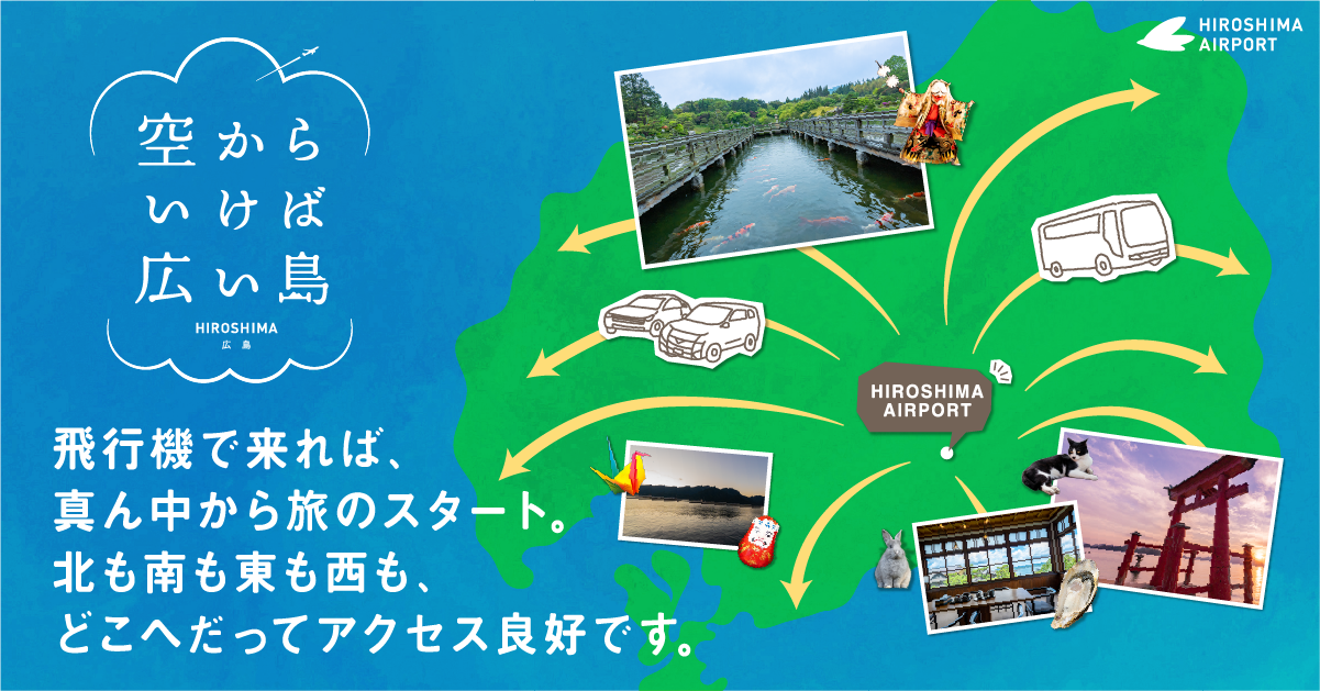 広島空港は広島県の真ん中に位置しているため、県内を周遊するのにとっても便利。