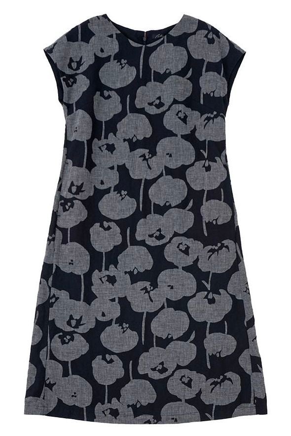 商品名:リネンコットン絣昼咲月見草柄ショート袖ワンピース