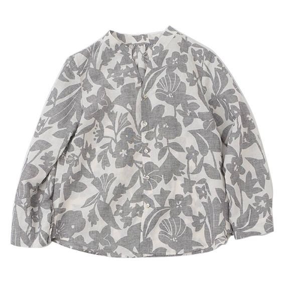 商品名:リネンコットン絣夏霞柄スタンド襟シャツ