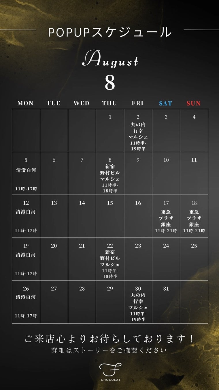 「F CHOCOLAT(エフショコラ)」はこれまで、都内を中心としたPOPUP出店やInstagramからの注文を受け、数量限定の販売を行っておりました。