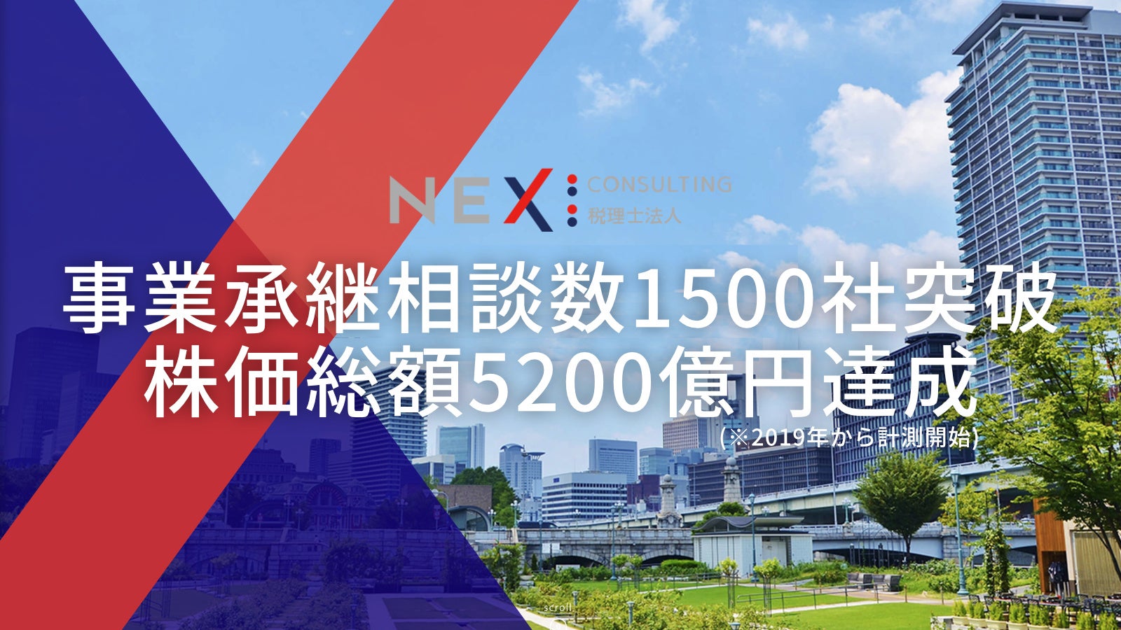 【株式会社NEX Consulting】事業承継の相談が1500社を突破 〜株価総額ベース5200億円に達成〜