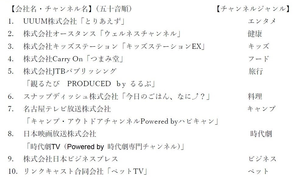 「FASTチャンネル」の第一弾ラインナップには、チャンネルキュレーターにUUUMや名古屋テレビなど計10社を迎え、エンタメや子供向け、料理・旅行・健康など厳選されたジャンルの全10チャンネルを展開します。