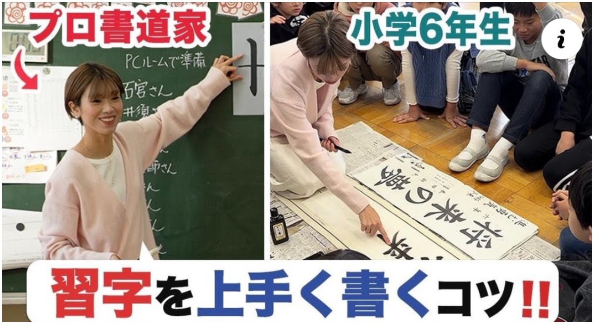 また、小学校を訪問して授業の一貫として書を指導する「出張書道教室」をこれまでに数回実施。わかりやすくてい面白い!と好評をいただいております。