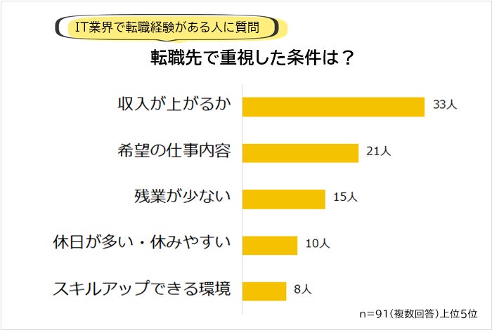 IT業界の転職先条件で重視したことは「収入が上がるか」