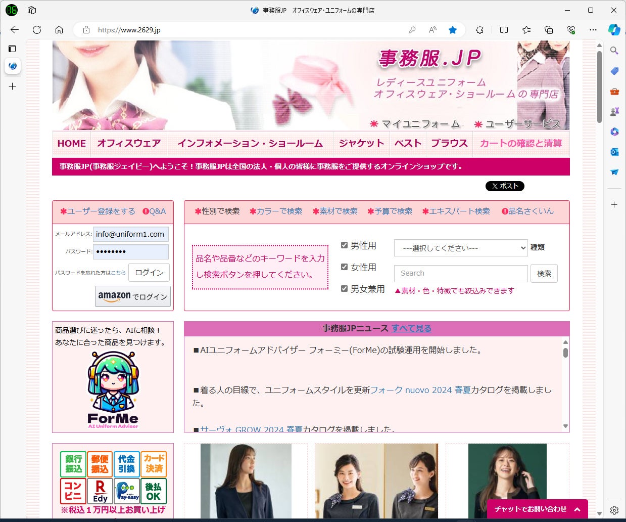 ビジネスシーンで着用する制服やステージ衣装など、多種多様なユニフォームを取り扱うECサイトです。いずれの商品も1着から、個人の方でもご購入いただけます。本サービスから派生して、作業服に特化した「作業服JP」やレディースユニフォーム専門の「事務服JP」等のECサイトも運営しています。