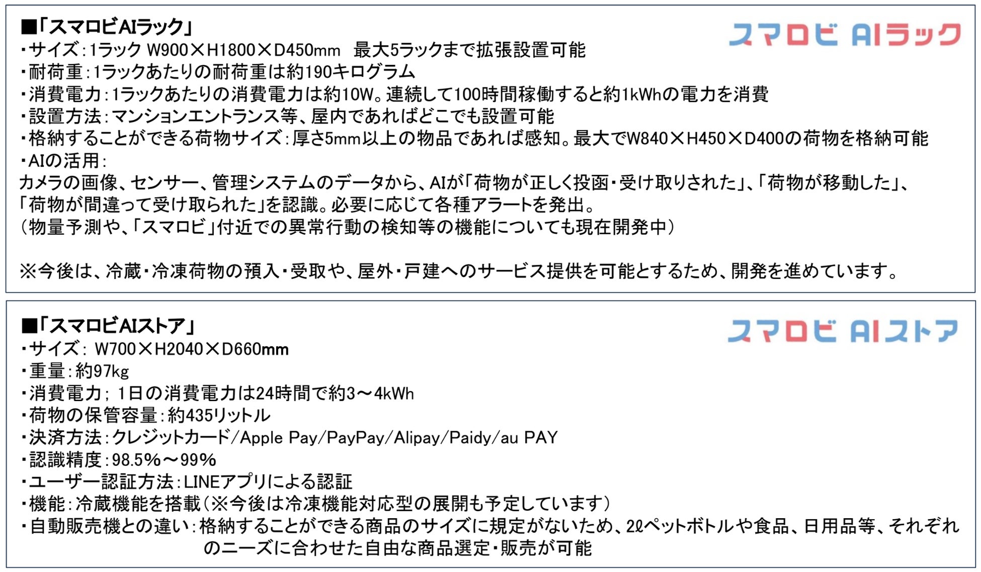 「スマロビ」は、あらゆる大きさの荷物を24時間いつでも預入・受取可能とするサイズ変形式AI宅配ボックス「スマロビAIラック」と、日用品を冷蔵にて販売するAI無人ストア「スマロビAIストア」により構成される、マンションの住み心地にイノベーションを起こす新しいサービスです。