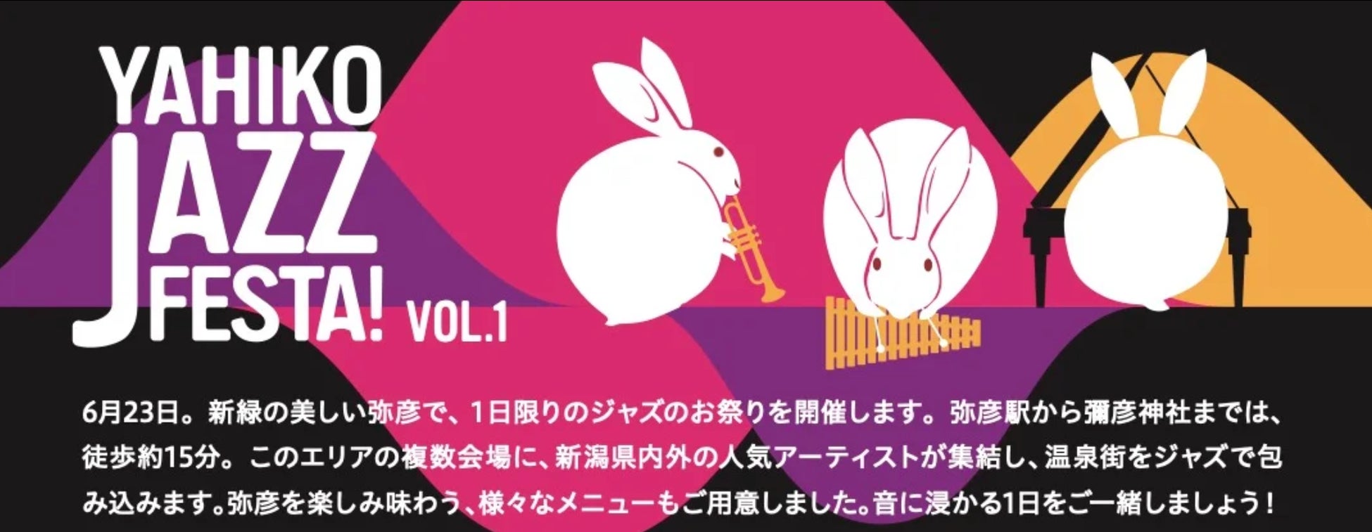 弥彦ジャズフェスタ実行委員会(実行委員長:吉川 尚美)は、ジャズを通じて参加者の皆様に豊かなひとときを提供し、 さらには弥彦村の地域活性に寄与したいという想いから、6月23日(日)に弥彦温泉街にて「YAHIKO JAZZ FESTA! VOL.1」を初開催します。新潟で活動中のジャズミュージシャンを中心に、若手からベテラン勢まで総勢20組のアーティストが様々な会場でジャズを演奏し、弥彦温泉街一体がジャズの音色に包まれます。