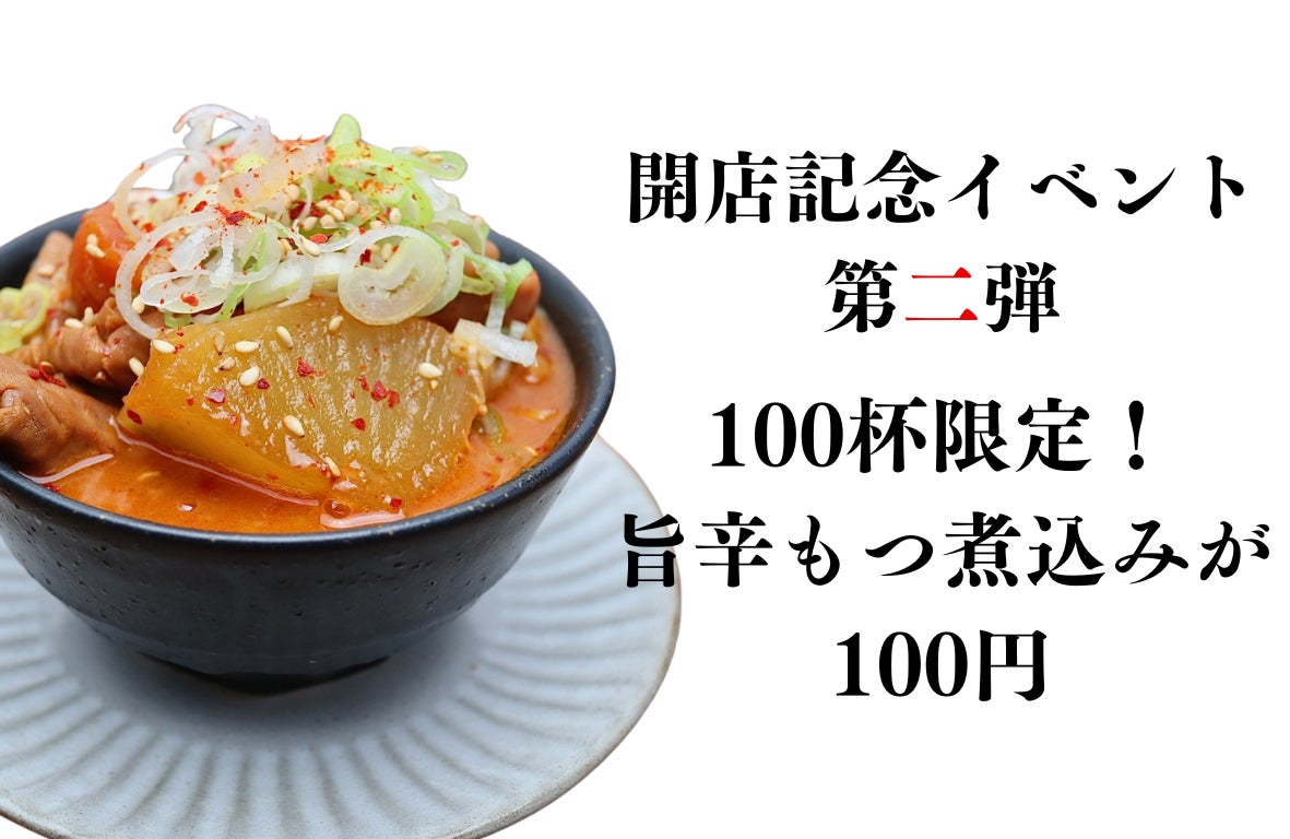 開店記念イベント第二弾:100杯限定!「旨辛もつ煮込み」が100円